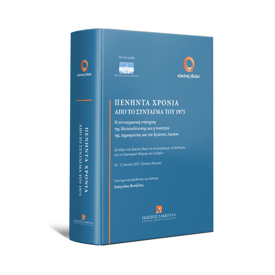 The think tank Kyklos Ideon (Circle of Ideas), in collaboration with diaNEOsis and Delphi Economic Forum, and with the support of Sakkoulas Publications, is organizing a conference to mark the fiftieth anniversary of the 1975 Constitution. The event will take place on June 10 and 11, 2025, at the Zappeion Megaron, exactly 50 years since the Constitution came into force, under the special title:
